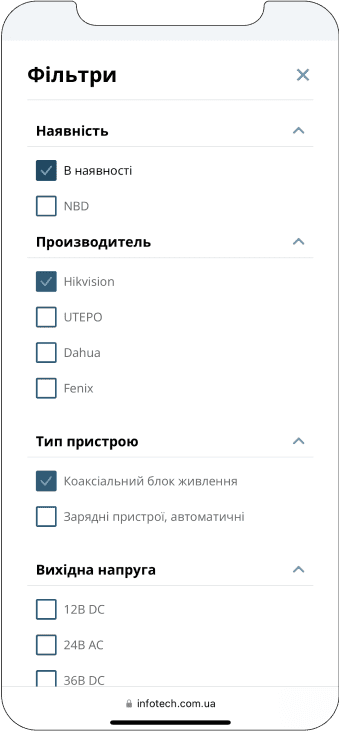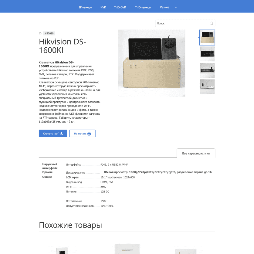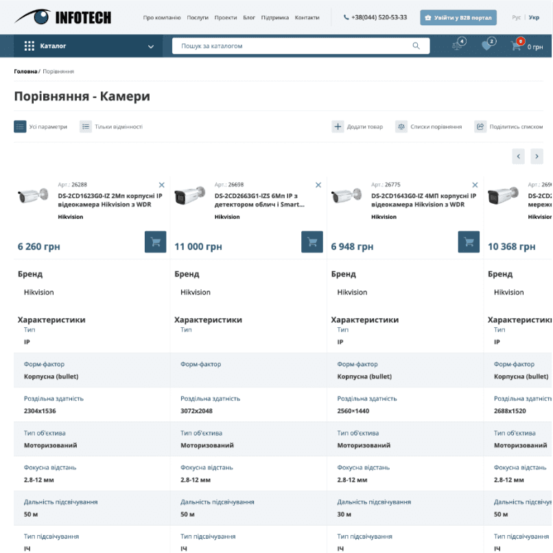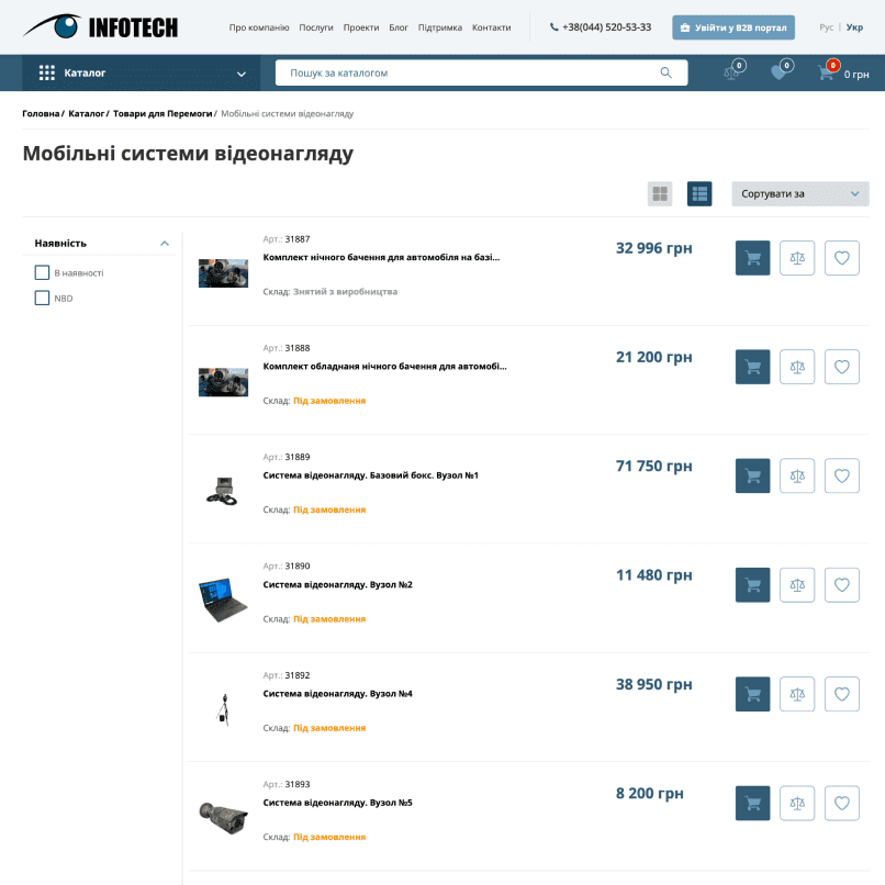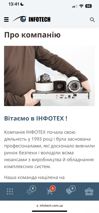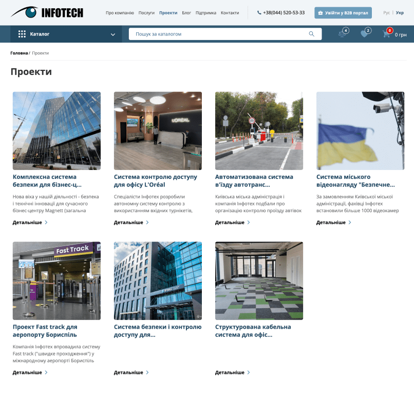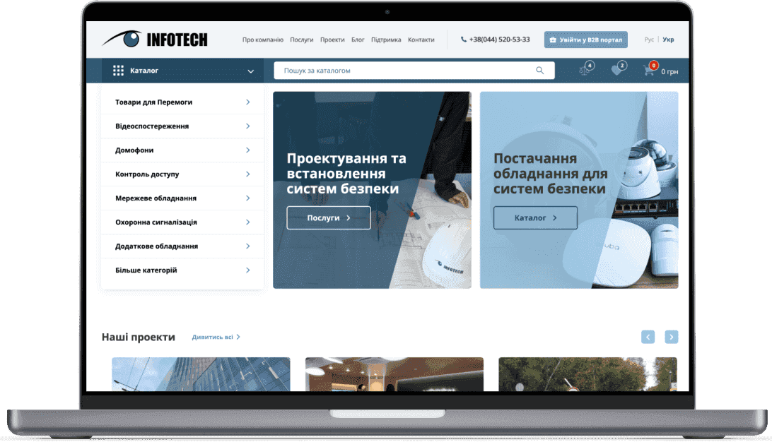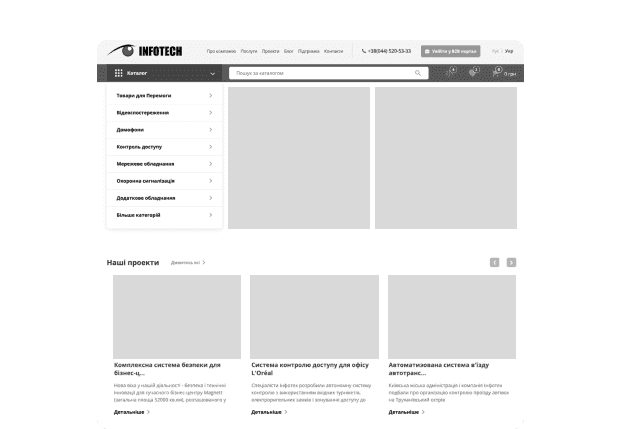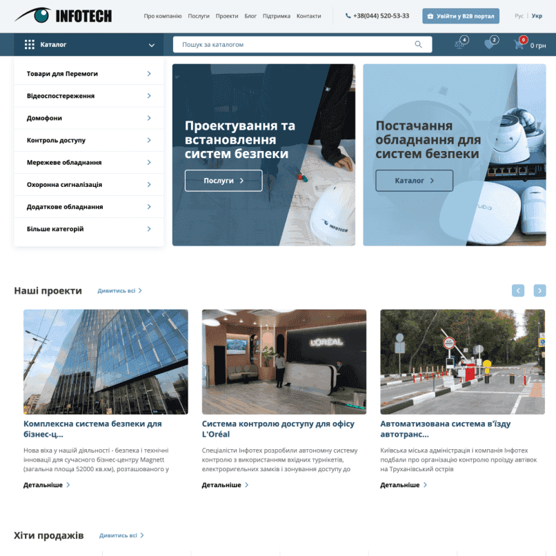 The website of the official distributor of security systems, created for Infotech.