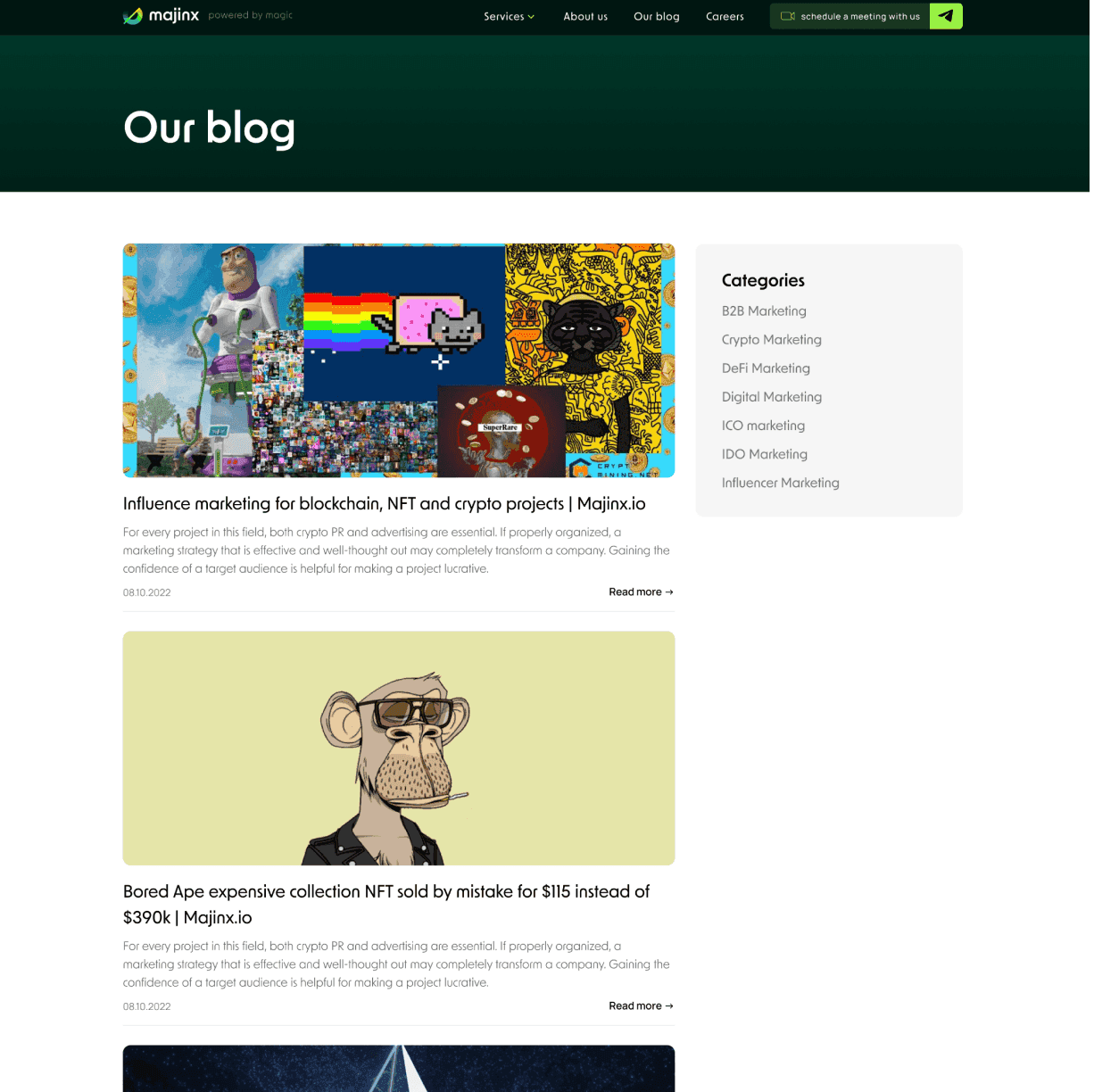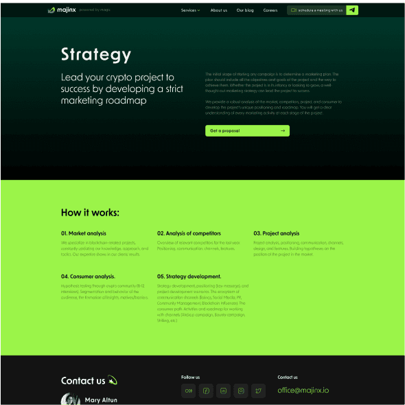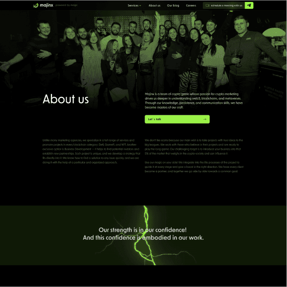 The NDC team developed a corporate website for the marketing agency Majinx, which specializes in providing a full range of marketing services, including strategic marketing, digital advertising, SMM, SEO, and more.