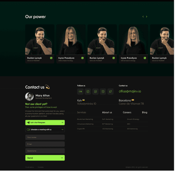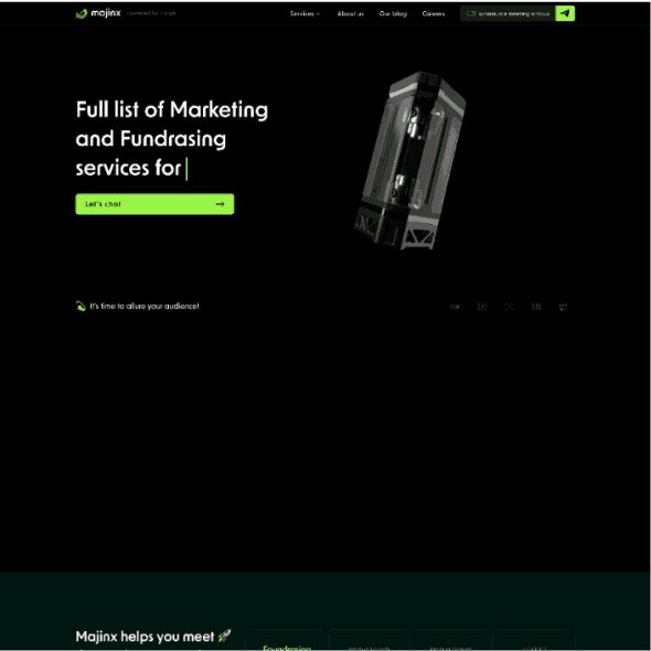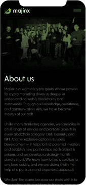 The Majinx.io website was developed with a responsive design, ensuring proper display and functionality across various devices — from computers to smartphones and tablets.