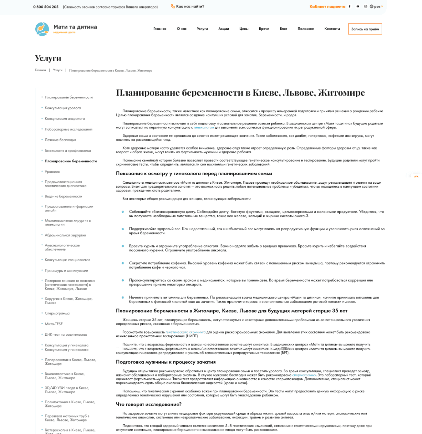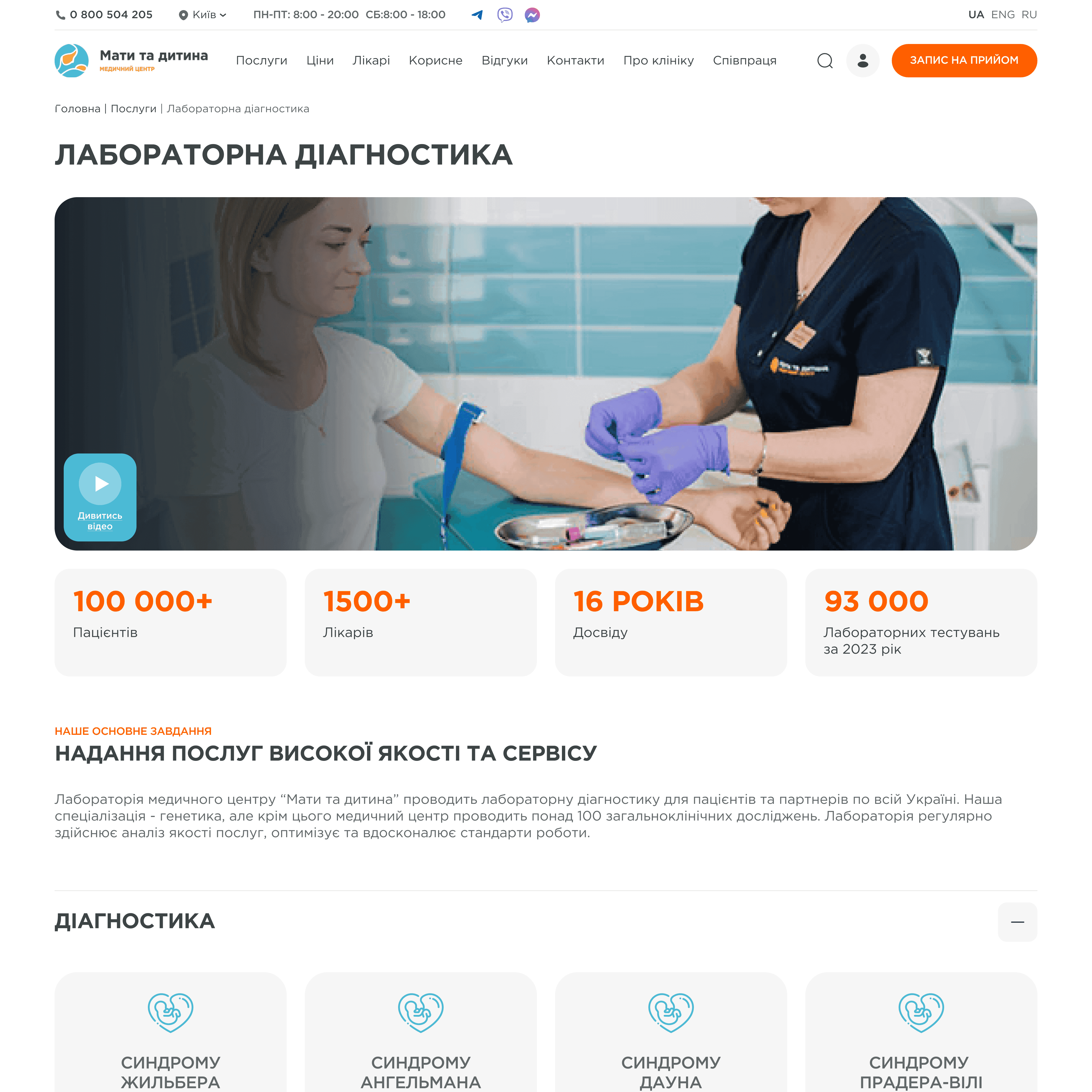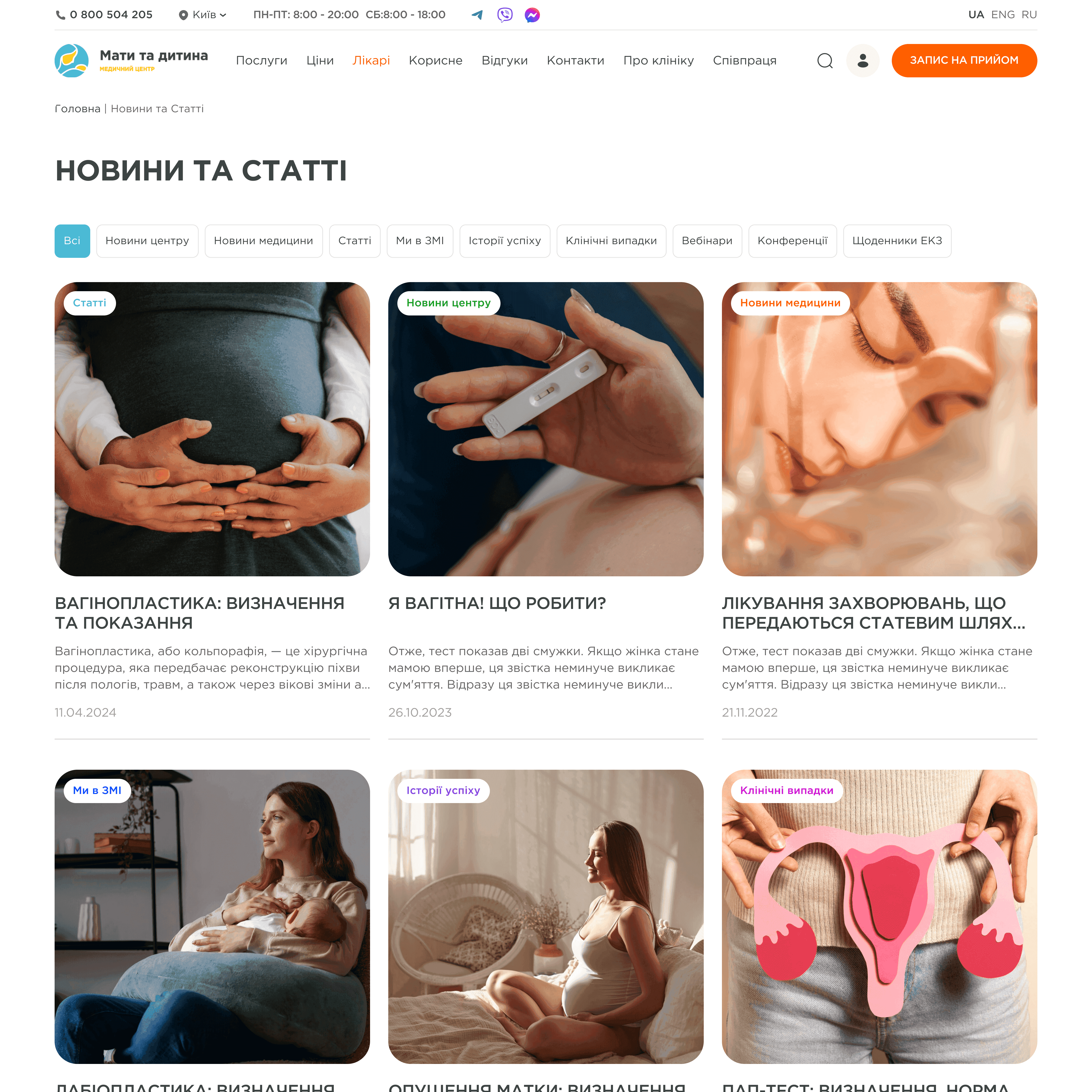 This website is designed for the Mother and Child Medical Center to showcase its services, doctors, and opportunities for patients. The site includes information about the clinic, its specializations, appointment scheduling, and other essential features for patient convenience.