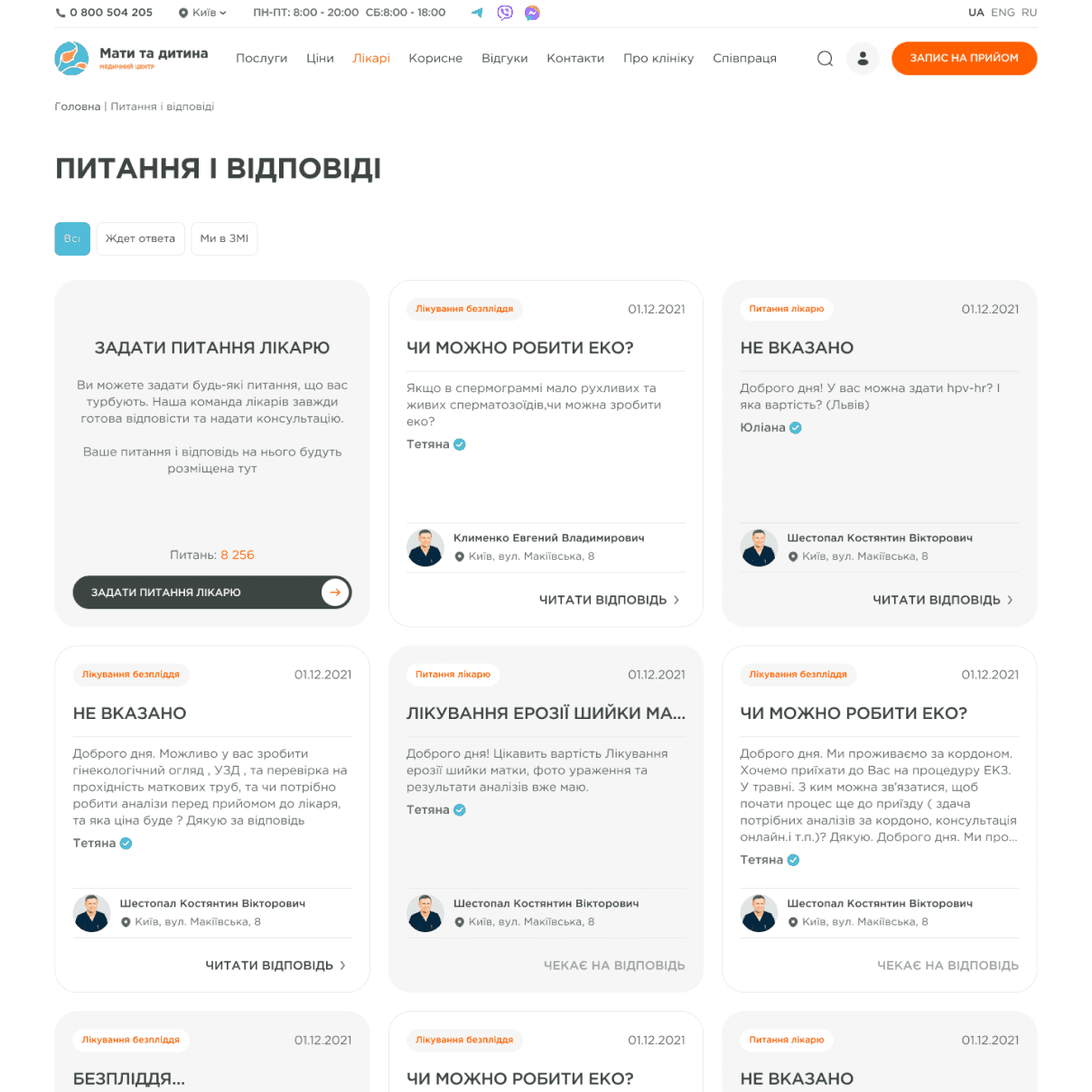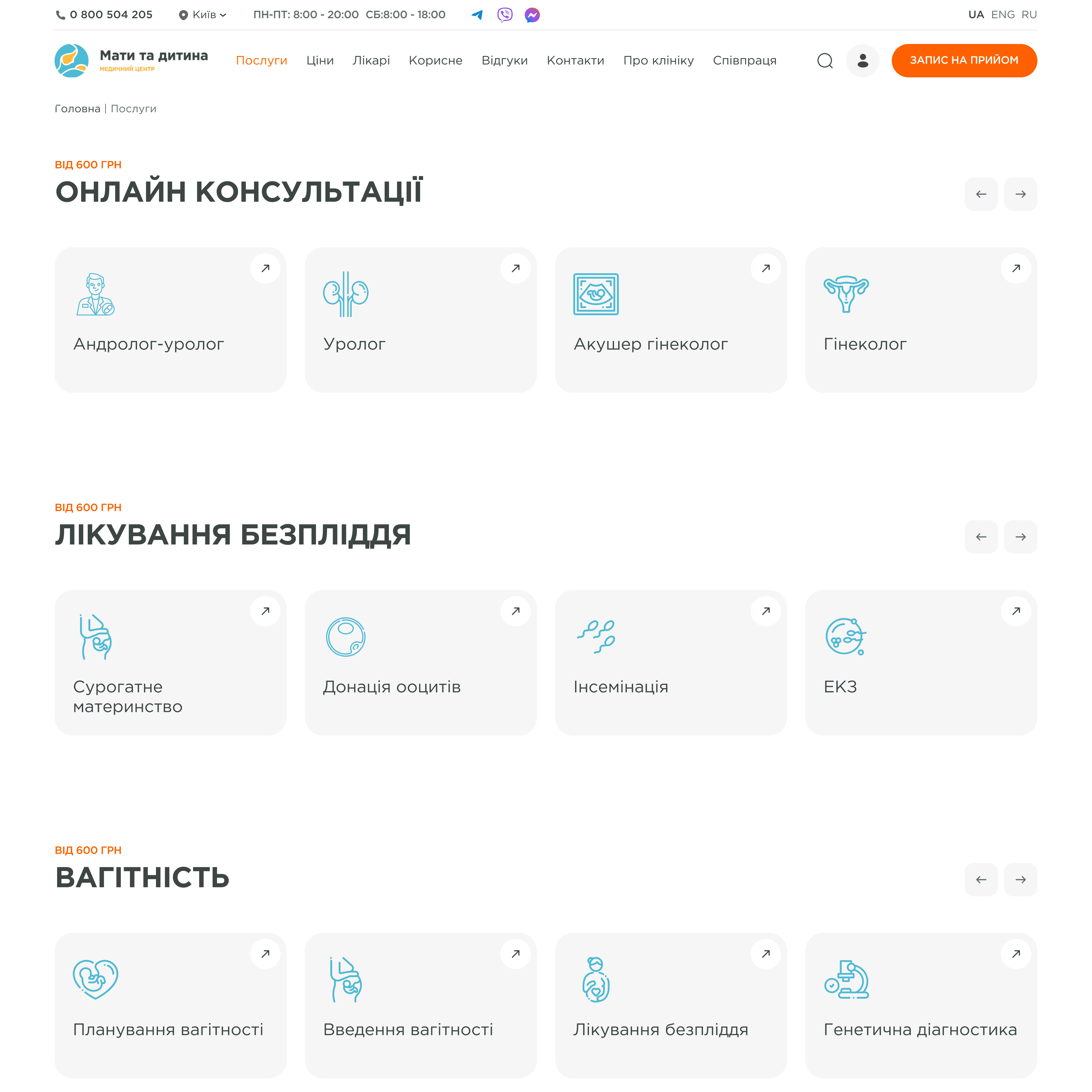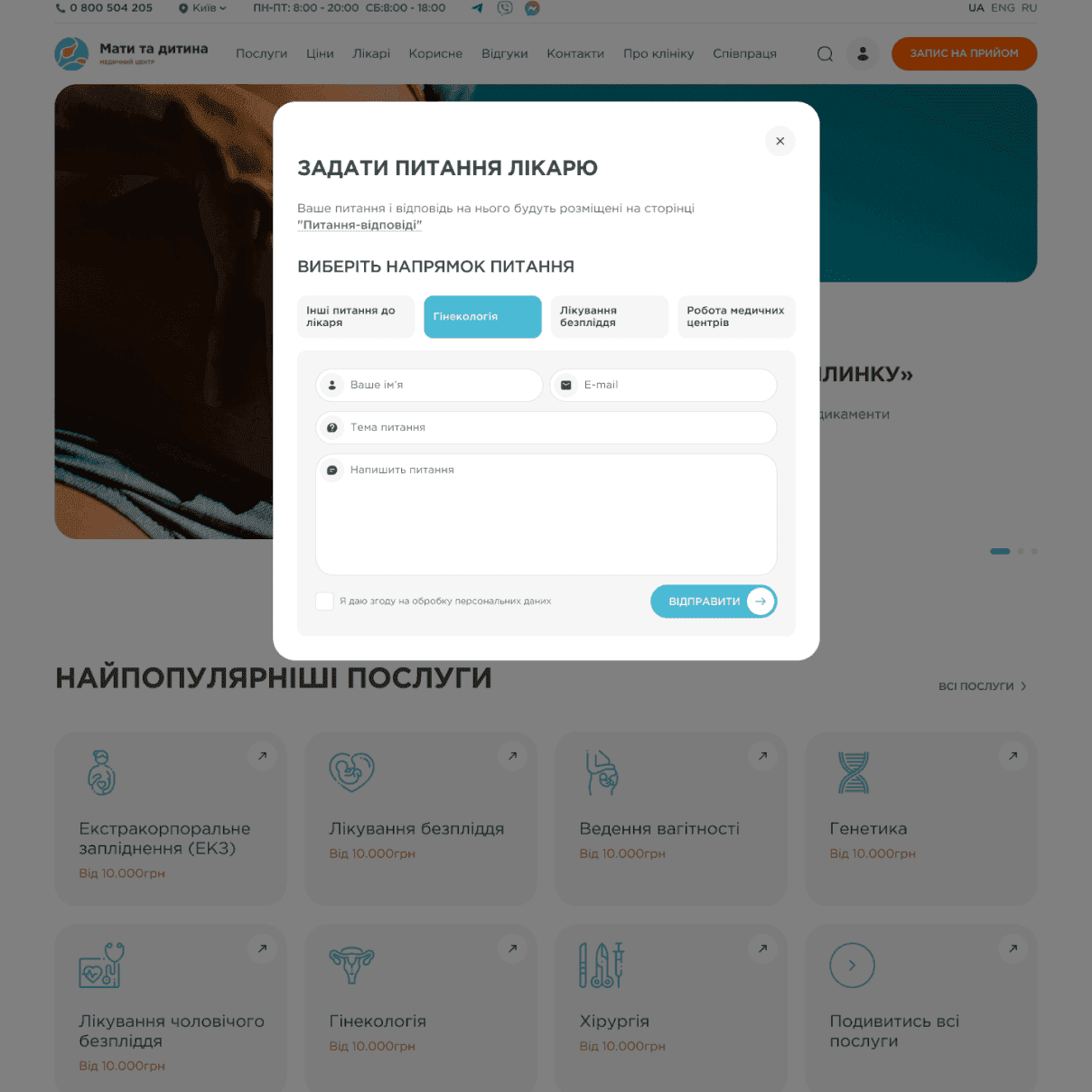 This website is designed for the Mother and Child Medical Center to showcase its services, doctors, and opportunities for patients. The site includes information about the clinic, its specializations, appointment scheduling, and other essential features for patient convenience.