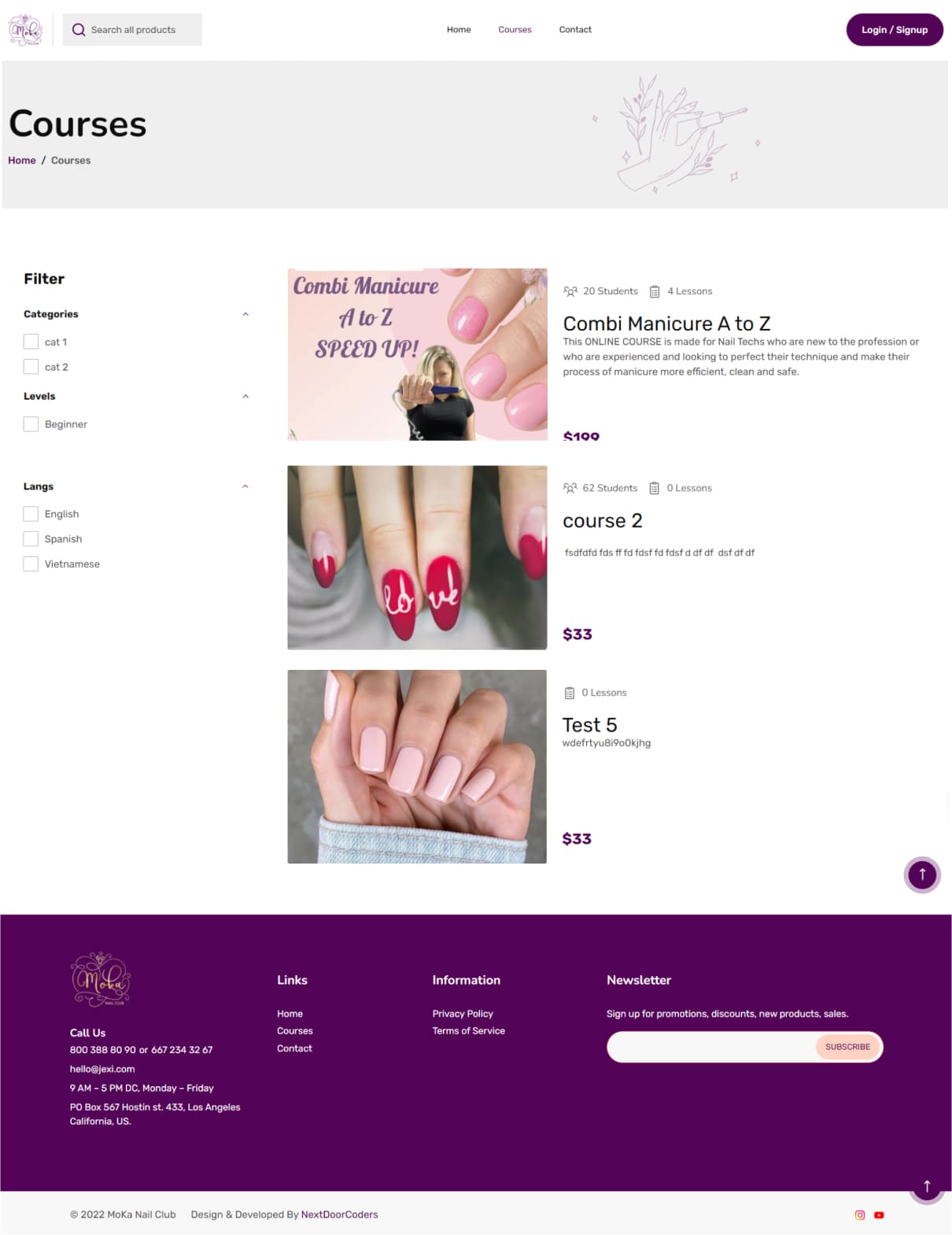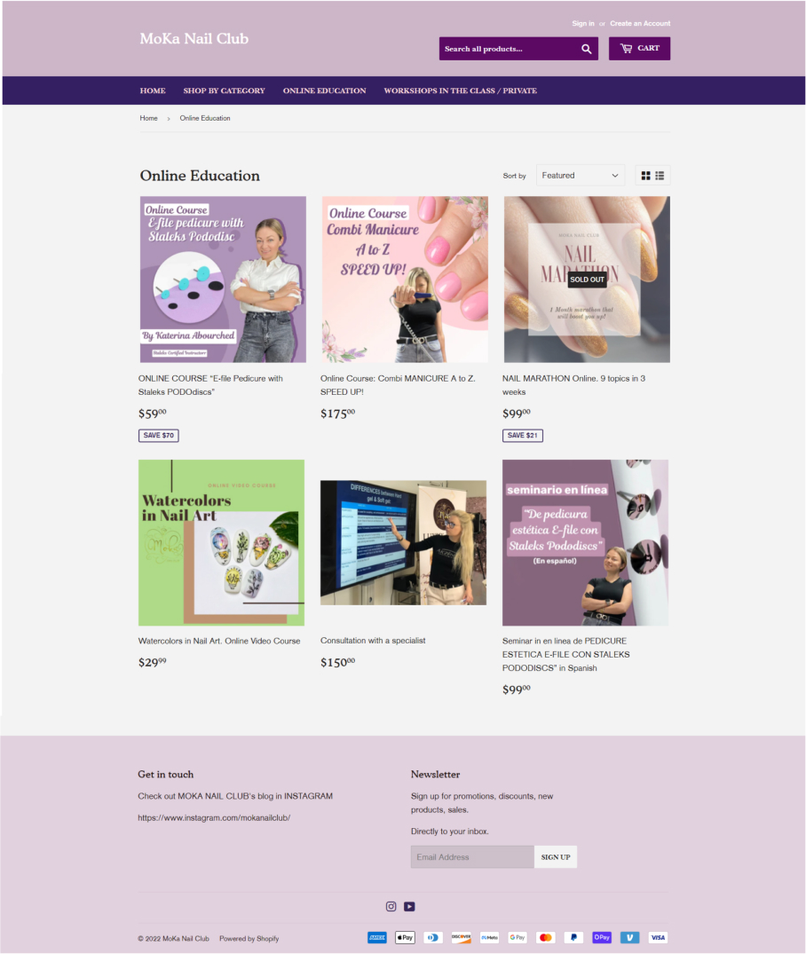 Website with online courses for manicurists