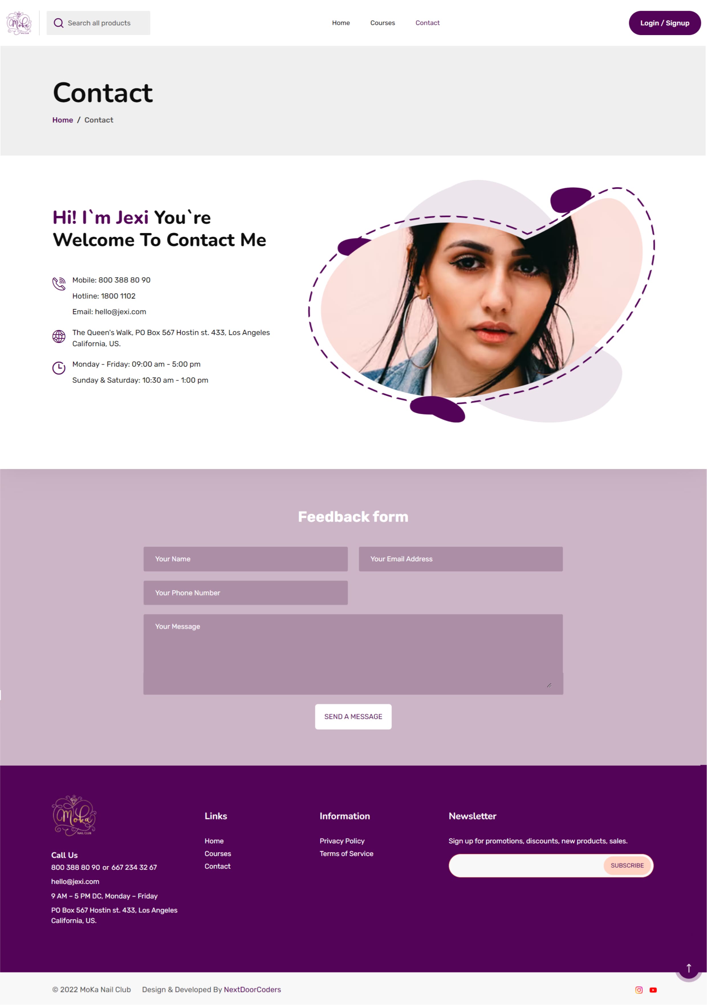 The first screen looks harmonious, clearly represents the goals of its visitors, advertises manicure courses, inspires trust thanks to the photo of the nail technician, and encourages registration for courses.