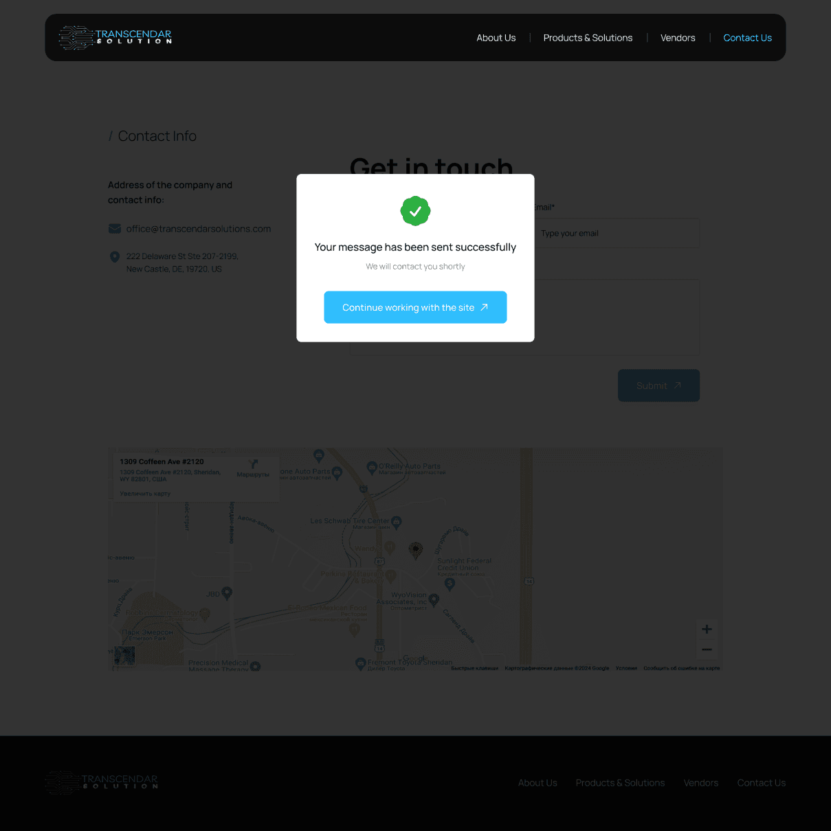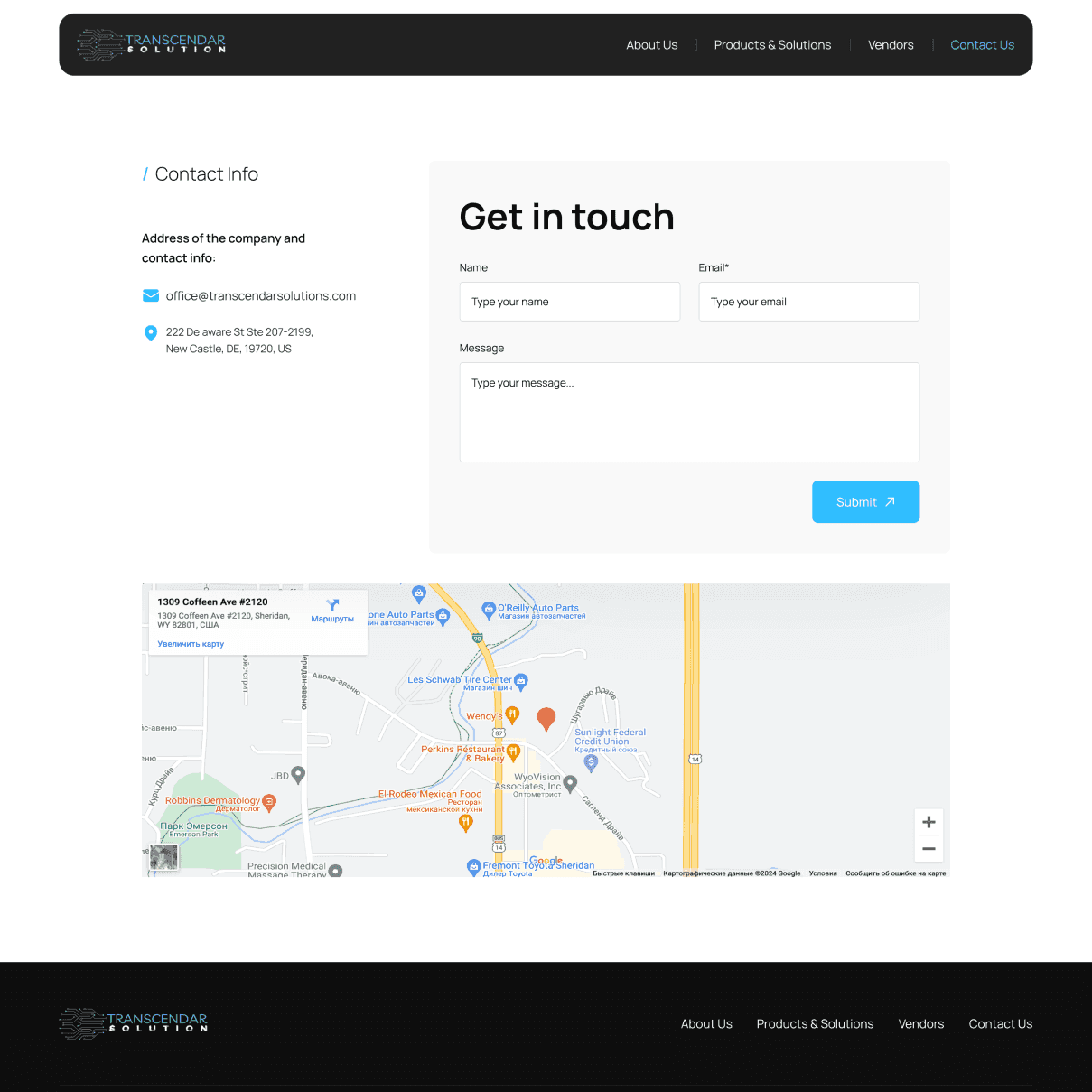 The design was developed with a focus on user convenience and alignment with the corporate style of Transcendar Solutions.