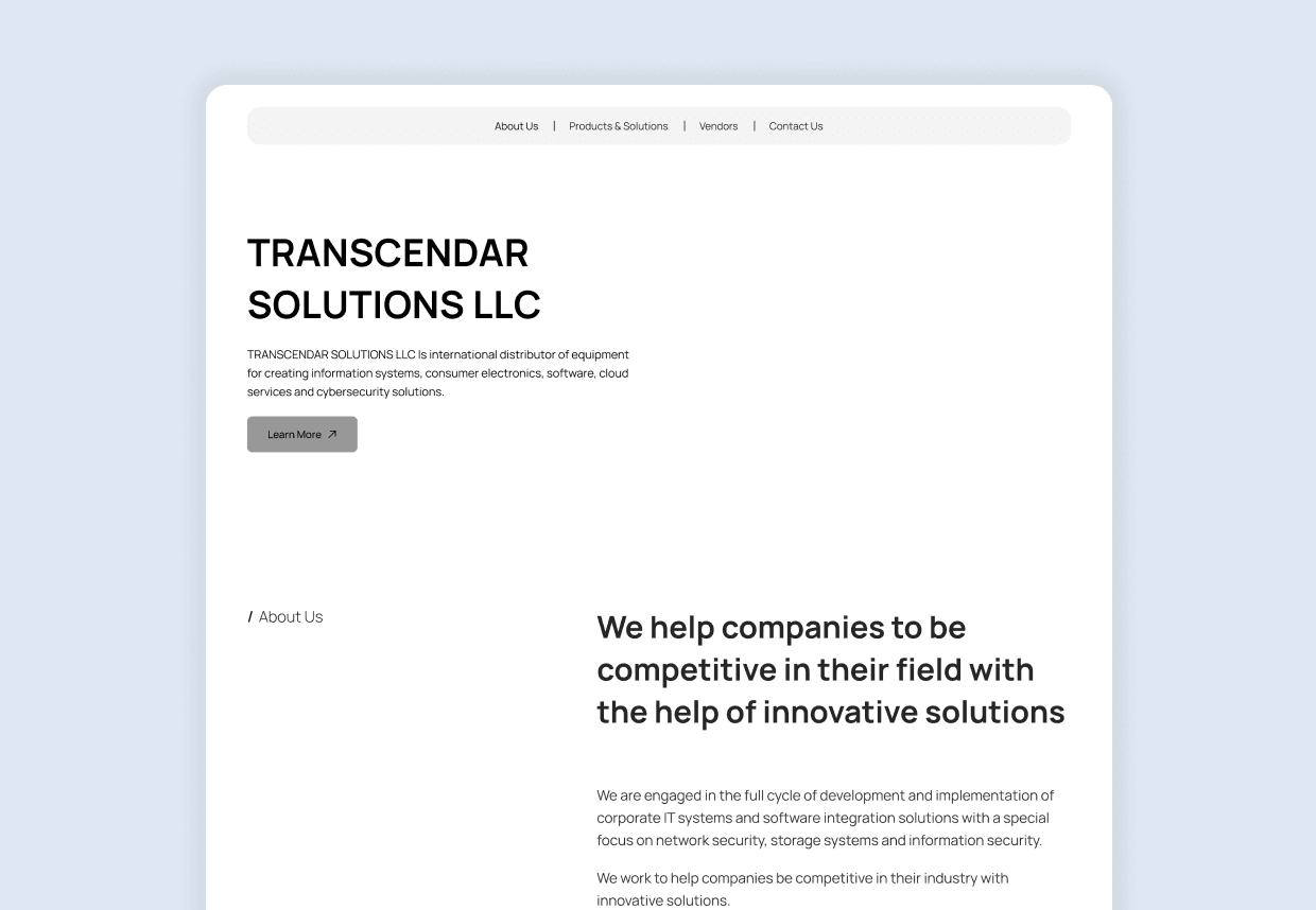 Transcendar Solutions is a company specializing in providing innovative IT solutions for businesses of all sizes.