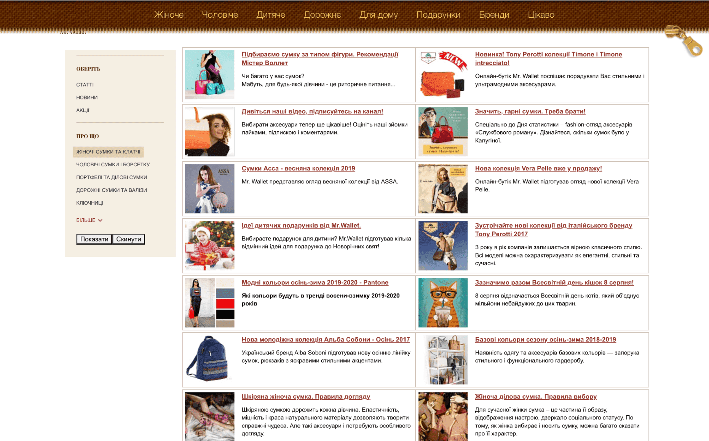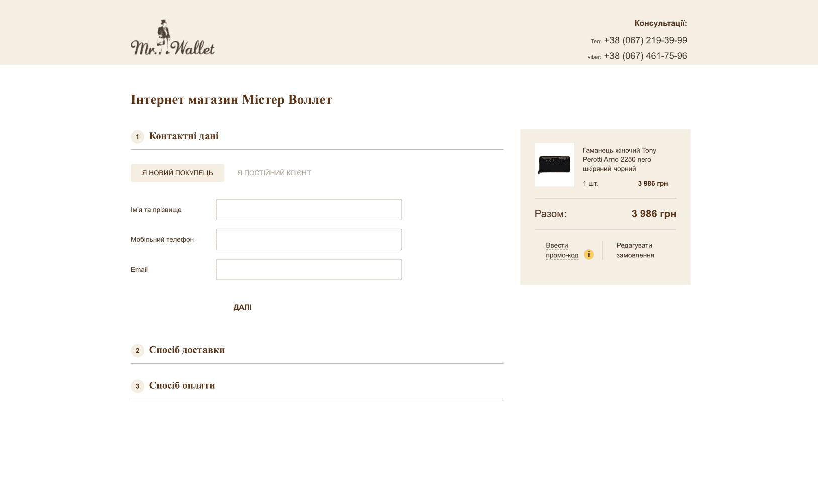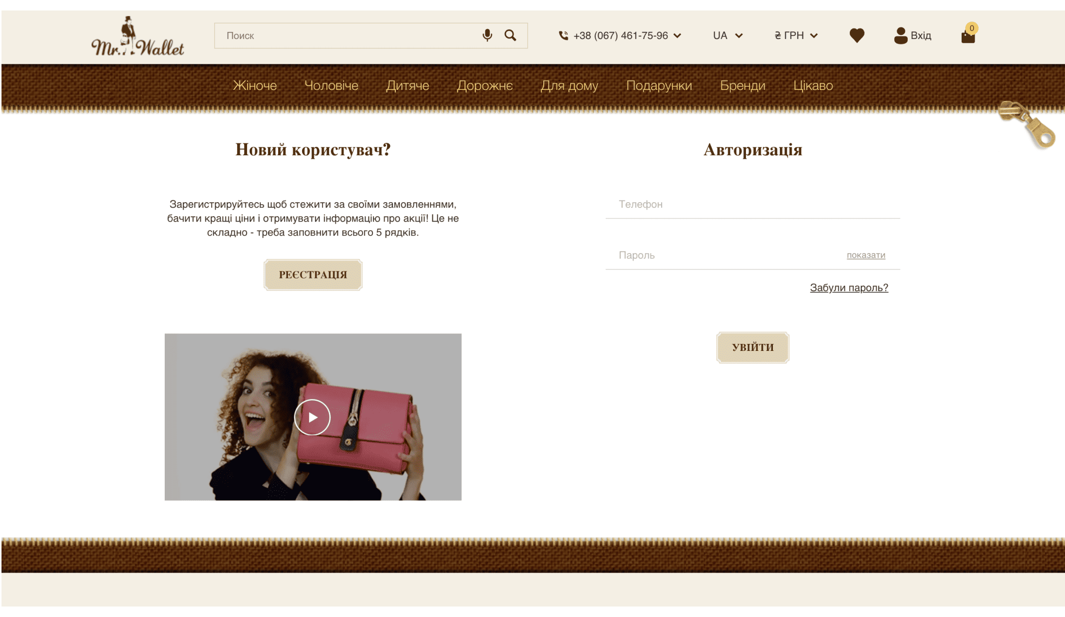 Complete redesign of the “Mr. Wallet” online store, preserving the brand book style, eliminating inconvenient user functionality, and improving site performance.