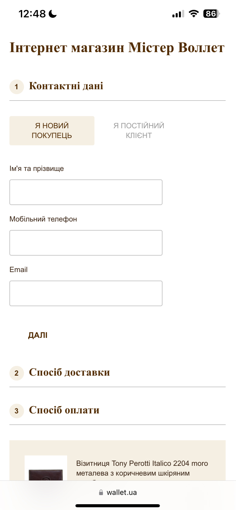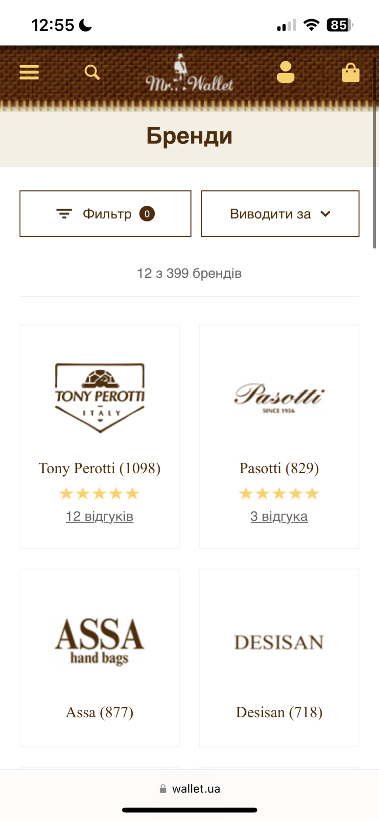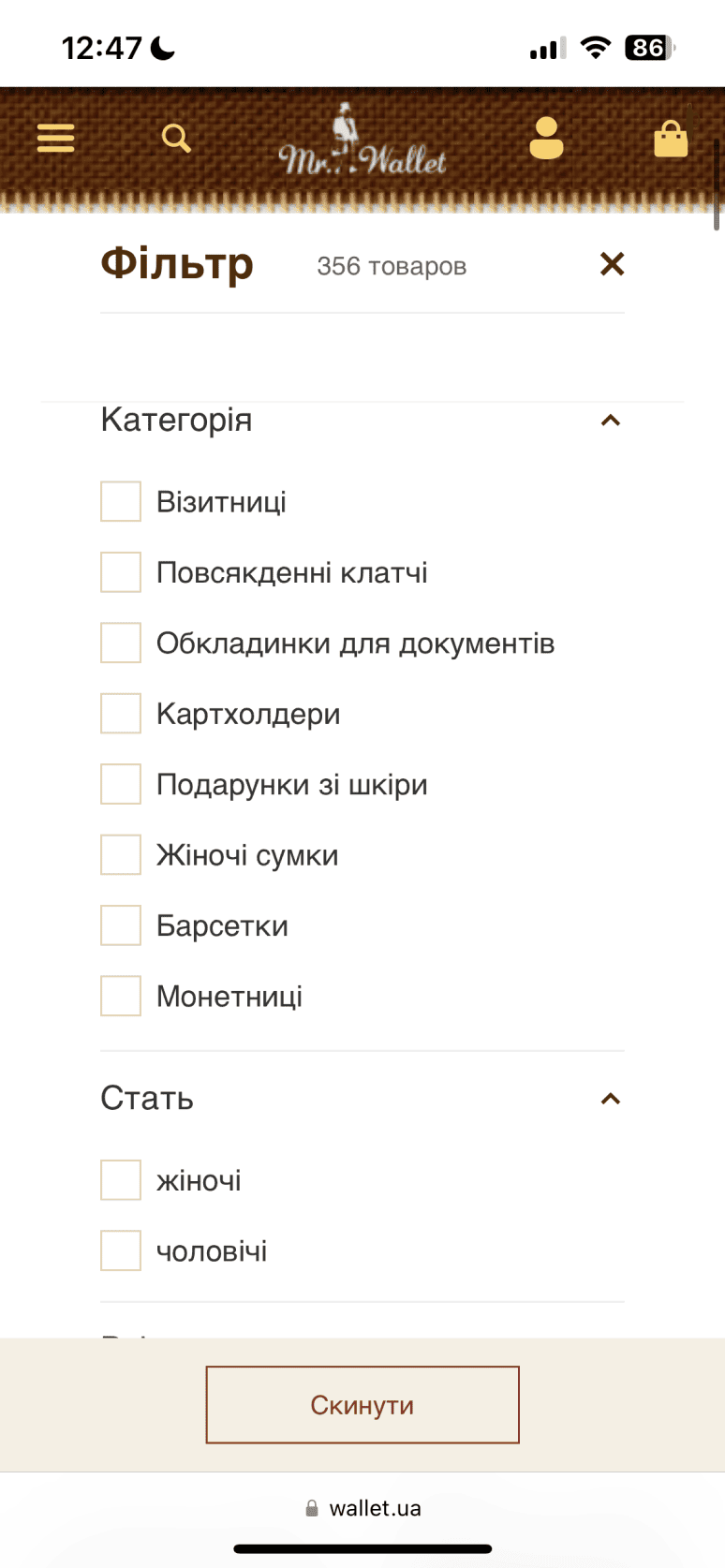Complete redesign of the “Mr. Wallet” online store, preserving the brand book style, eliminating inconvenient user functionality, and improving site performance.