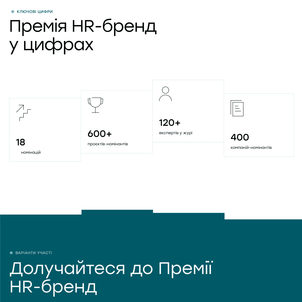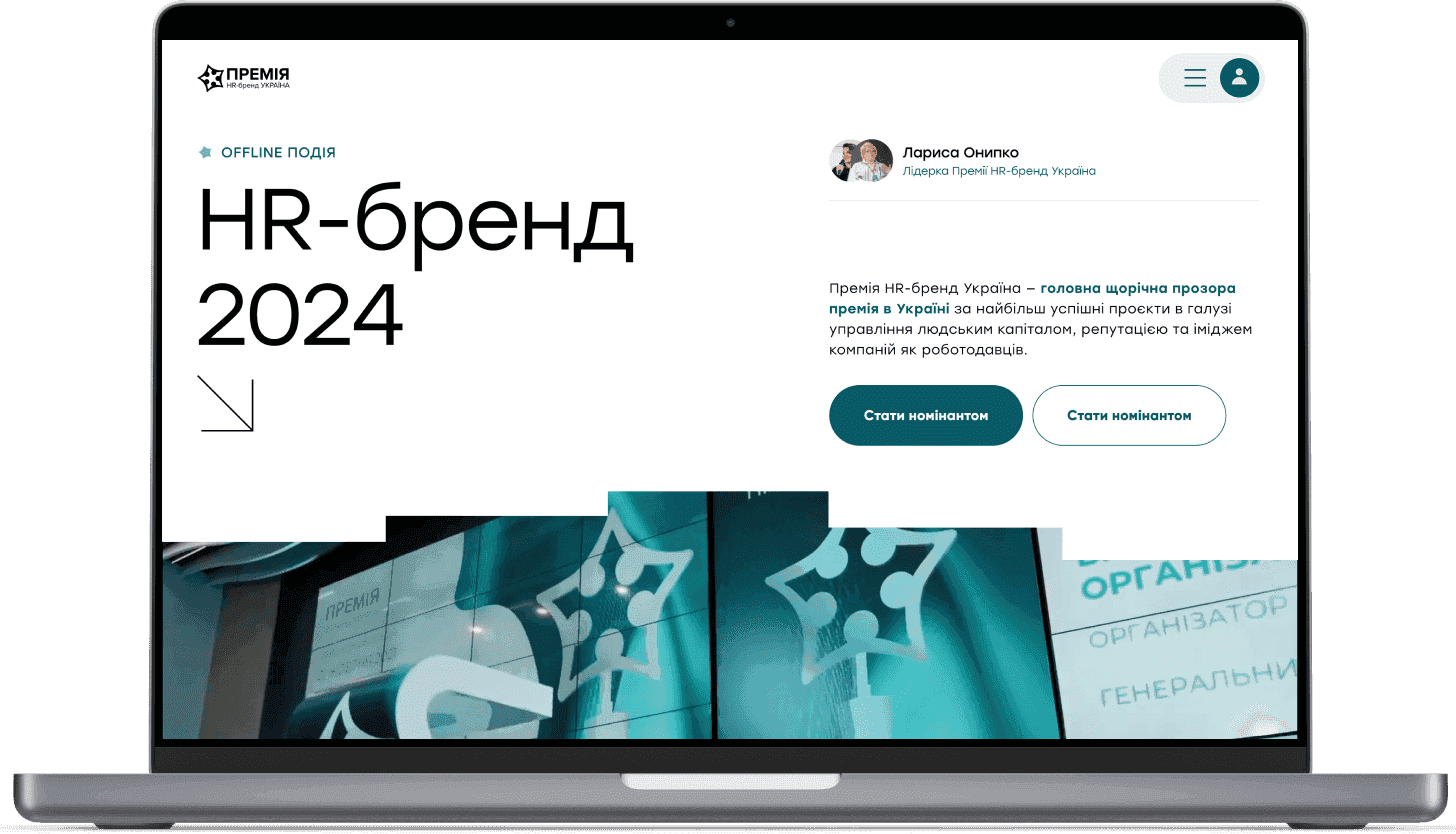 Сайт створений для премії HR-бренд Україна, яка відзначає найбільш успішні проєкти у сфері управління людським капіталом, а також репутацією та іміджем компаній як роботодавців.