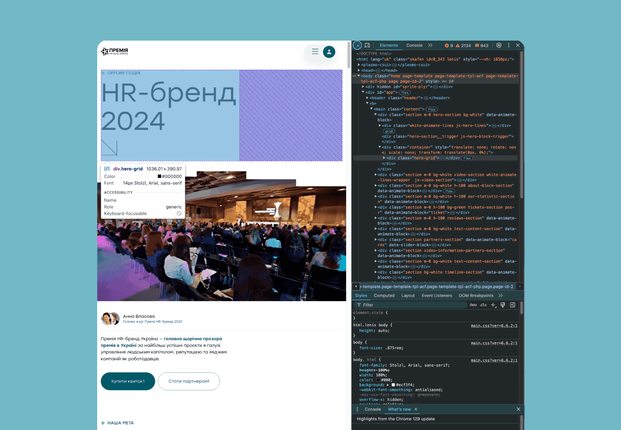 Анімаційні ефекти відігравали ключову роль у створенні сучасного та динамічного інтерфейсу сайту премії HR-бренд Україна.