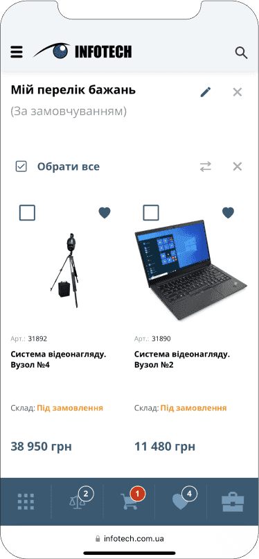 Сайт має інструмент для порівняння кількох товарів за основними характеристиками. Зручний інтерфейс дозволяє користувачам легко аналізувати відмінності та вибирати найкращий варіант. Це допомагає зробити процес вибору продукції більш усвідомленим та зручним.