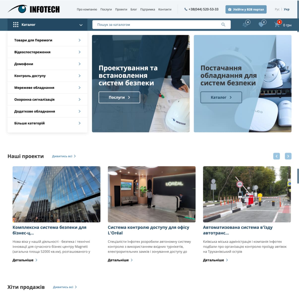 Також за мету було покладено створення не лише B2C, а і В2В систем. Ще однією важливою ціллю було підвищення впізнаваності бренду InfoTech та залучення нових клієнтів за допомогою зручного та функціонального веб-ресурсу.