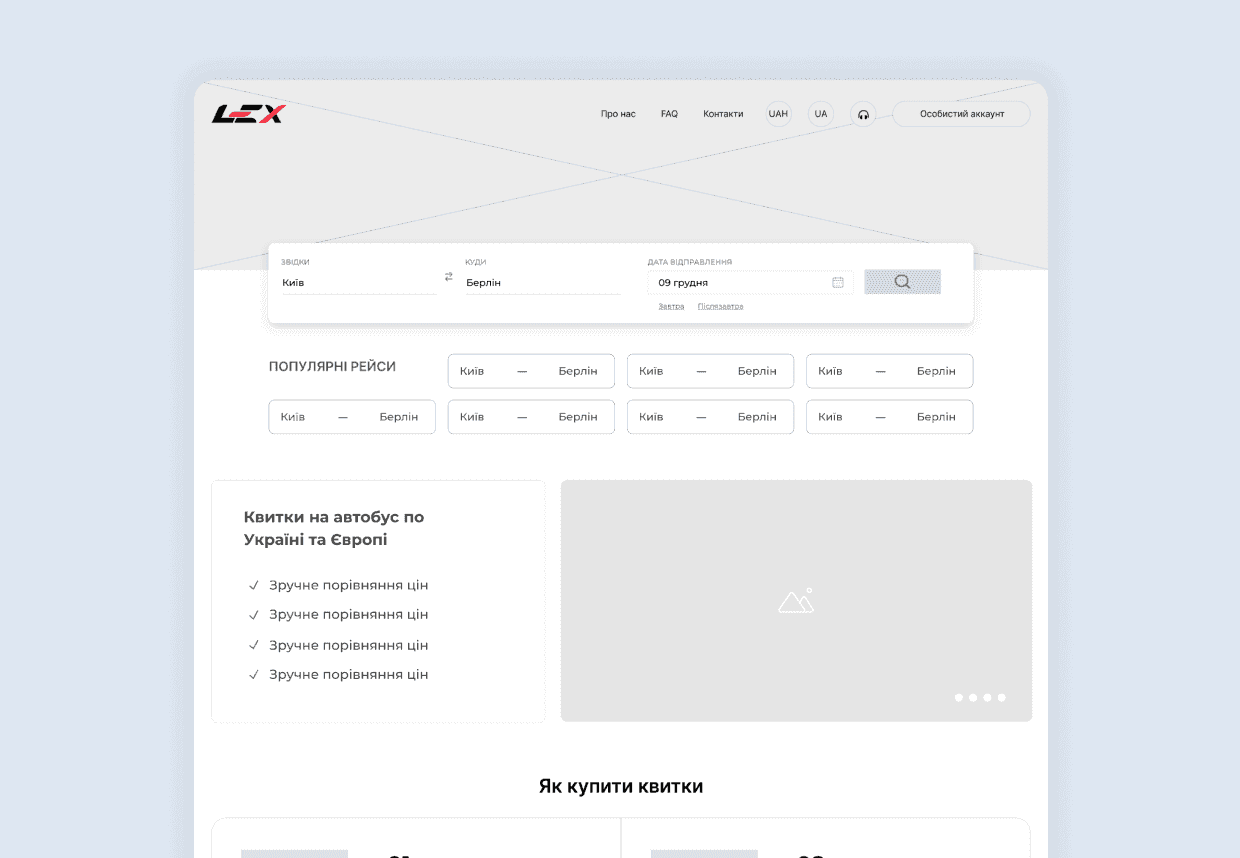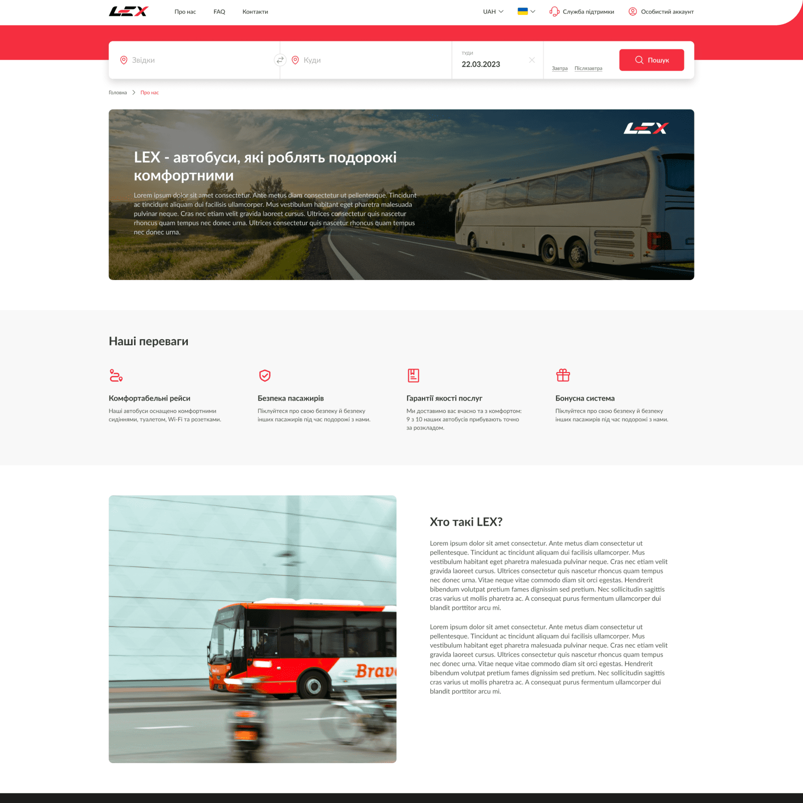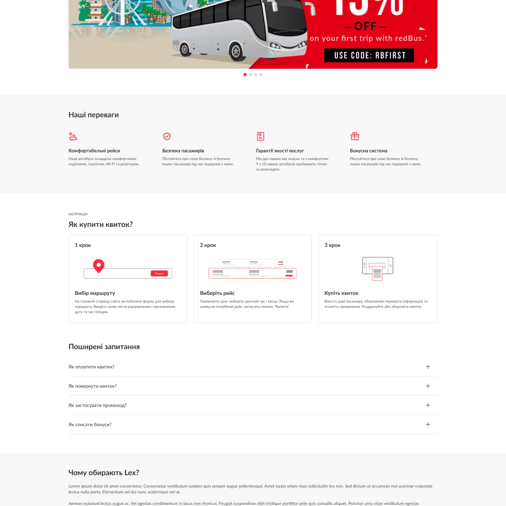 Сайт створений для замовлення автобусних рейсів, забезпечуючи зручний та інтуїтивний інтерфейс для користувачів.