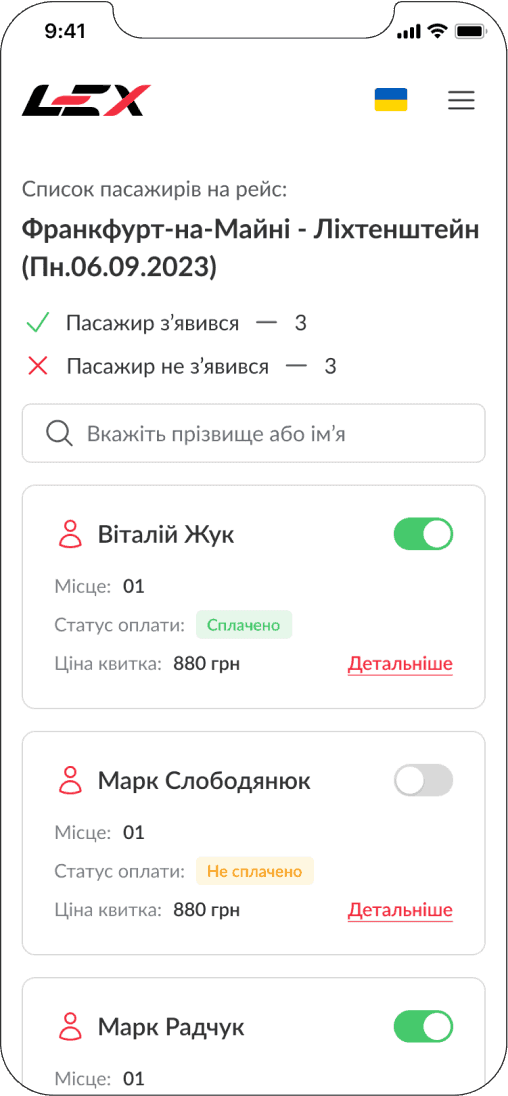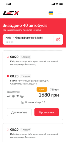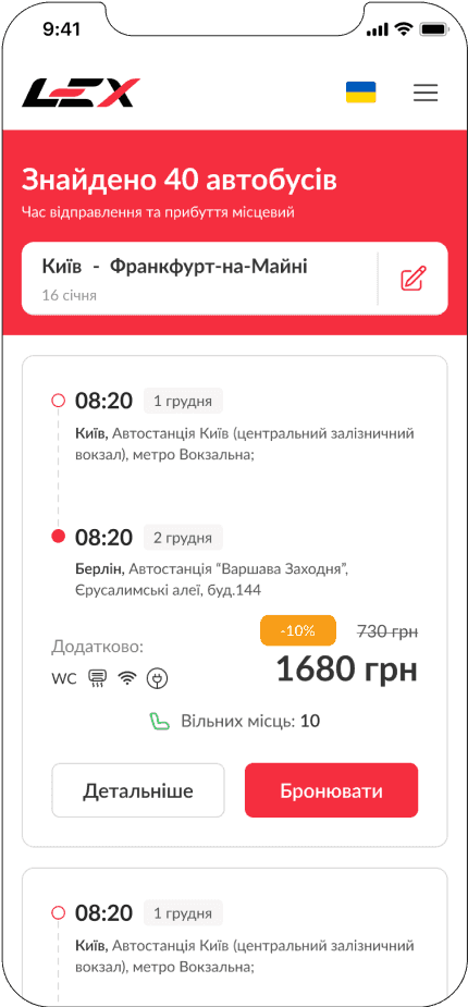Клієнти можуть легко вибирати маршрути, бронювати квитки та отримувати необхідну інформацію про поїздки.