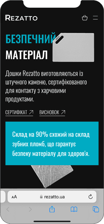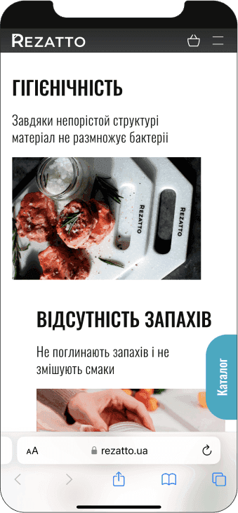 Сайт Rezatto.ua розроблений з урахуванням адаптивного дизайну, що забезпечує коректне відображення та функціонування на різних пристроях – від комп'ютерів до смартфонів та планшетів.